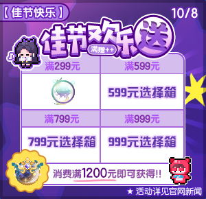 10月8日 | 繁星闪烁特效 | 消费送599元选择箱 | 消费送799元选择箱 | 消费送999元选择箱 | 炫星王冠泡泡 |