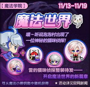 雷的猫咪侦探套装加入魔法屋,使用魔法小熊钥匙,走入你的魔法学院吧!