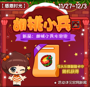 “胡桃小兵泡泡”限时加入乐爆翻翻卡,它就像个打瞌睡的小胖子,随着小兵的步伐摇摇晃晃。