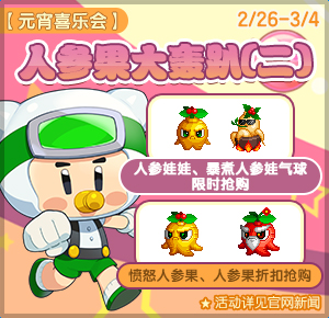PARTY期间,人参娃娃限时抢购哦!同时愤怒人参果、人参果更有低价折扣!