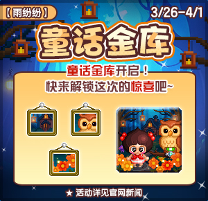 本次金库中加入了全频小乖喇叭10000个,还有新品密林童话背景套装!