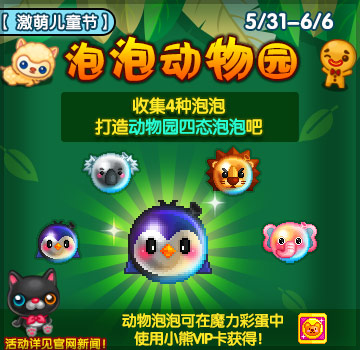 *合成后,原先收集的动物泡泡将会作为任务材料消失;可再次通过小熊VIP卡中获得!