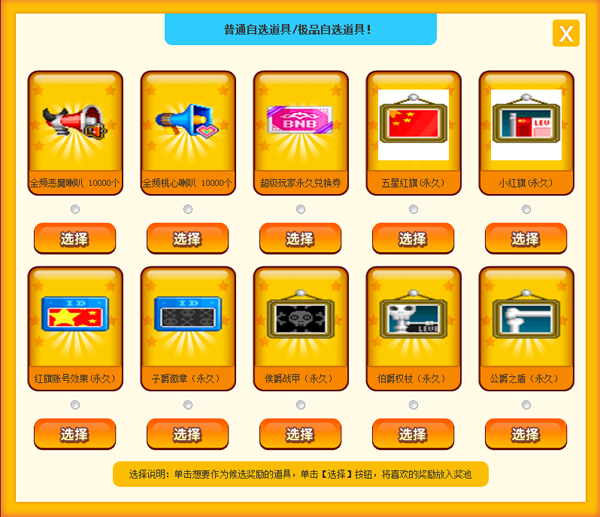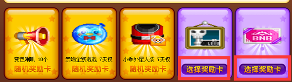 2、页面中会有5张卡片显示,前3张卡片为随机固定道具卡,后2张卡片为可选择道具卡;