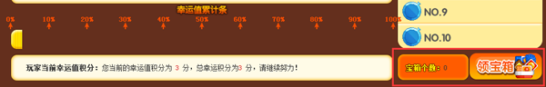 幸运值累积到100%时,将会自动获得一个宝箱,可在宝箱中随机获得各种游戏奖励,