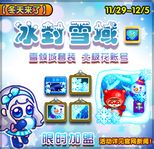隆冬将至,雪倾城套装以及北极花账号效果限时加入一克拉VIP卡中,