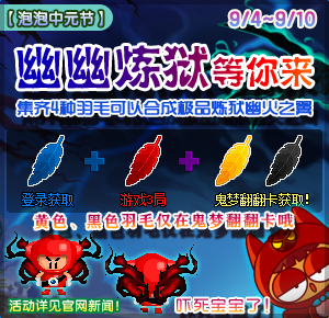 鬼梦翻翻卡有机会获得:黄羽、黑羽