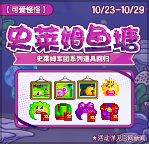 活动期间鱼塘限时加入曾经推出的人气搞怪史莱姆系列哦,不可错过!