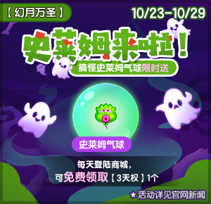 活动期间,每天登陆游戏内商城可免费领取“史莱姆气球”3天权1个哟。