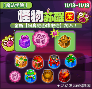 更有小橘丁泡泡、章鱼小丸子泡泡、怪咖机器人泡泡、怪咖本咖泡泡、冰封小熊喵泡泡、食人花泡泡、火焰领主泡泡,限时回归!